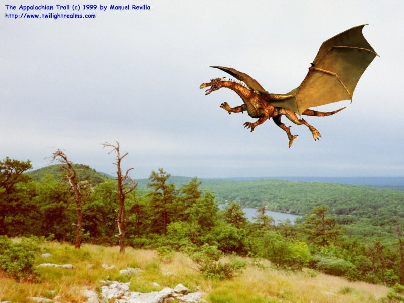 area) about 1989. The dragon figure was rendered in Poser 4 against a blue screen and